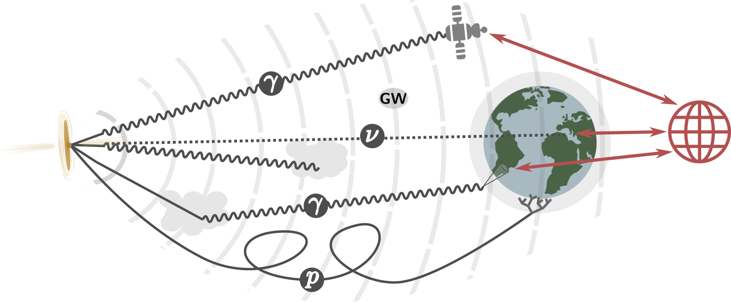 ✔ These objects come in a broad range of scales and configurations, a non-exhaustive list being: supermassive black holes (SMBH), blazars, active galactic nuclei, SMBH mergers, intermediate-mass black holes, compact binary mergers, pulsar-wind nebulae, supernovae, kilonovae, novae, gamma-ray bursts, X-ray binaries, pulsars, magnetars, fast radio bursts, tidal disruption events, other transient phenomena. Phenomena include matter in extreme conditions, particle acceleration and propagation in the interstellar medium, and gravitational lensing. Any studies of these objects and phenomena with one or multiple cosmic messengers, both from an observational (detection, imaging, spectrometry, characterisation…) and a phenomenological (modelling, predictions…) point of view, are within the scope of ACME.